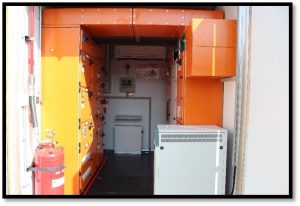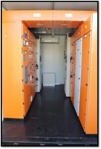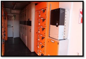 This was initially a 12m container, but due to skid restraints, the container was cut into half, that is, it now compiled of 2 containers, with one container feeding the MCC panels in the other container via an encapsulated busbar system.