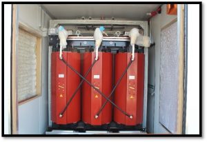 This container was a unique 7m in length as well and housed a 1600 kVA dry type transformer on the one side of the container.